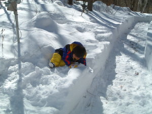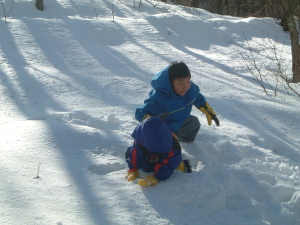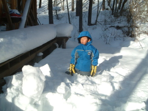 | 雪の表面は凍っているので「春紀は立てました」 が2歩後には雪に埋もれました (^_^) |